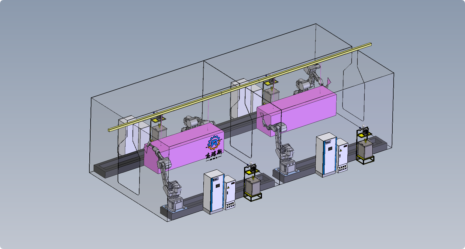 机器人地 轨移动滑台,自动喷涂旋转台,静电喷枪或者静电旋杯等主要硬件配置。