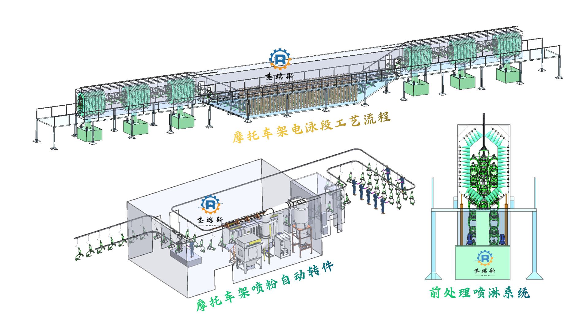 电泳涂装的涂底漆工序可实观完全自动化,漆前处理到电泳底漆烘干有可能实现和产工艺化,适用于大规模装配线生产。